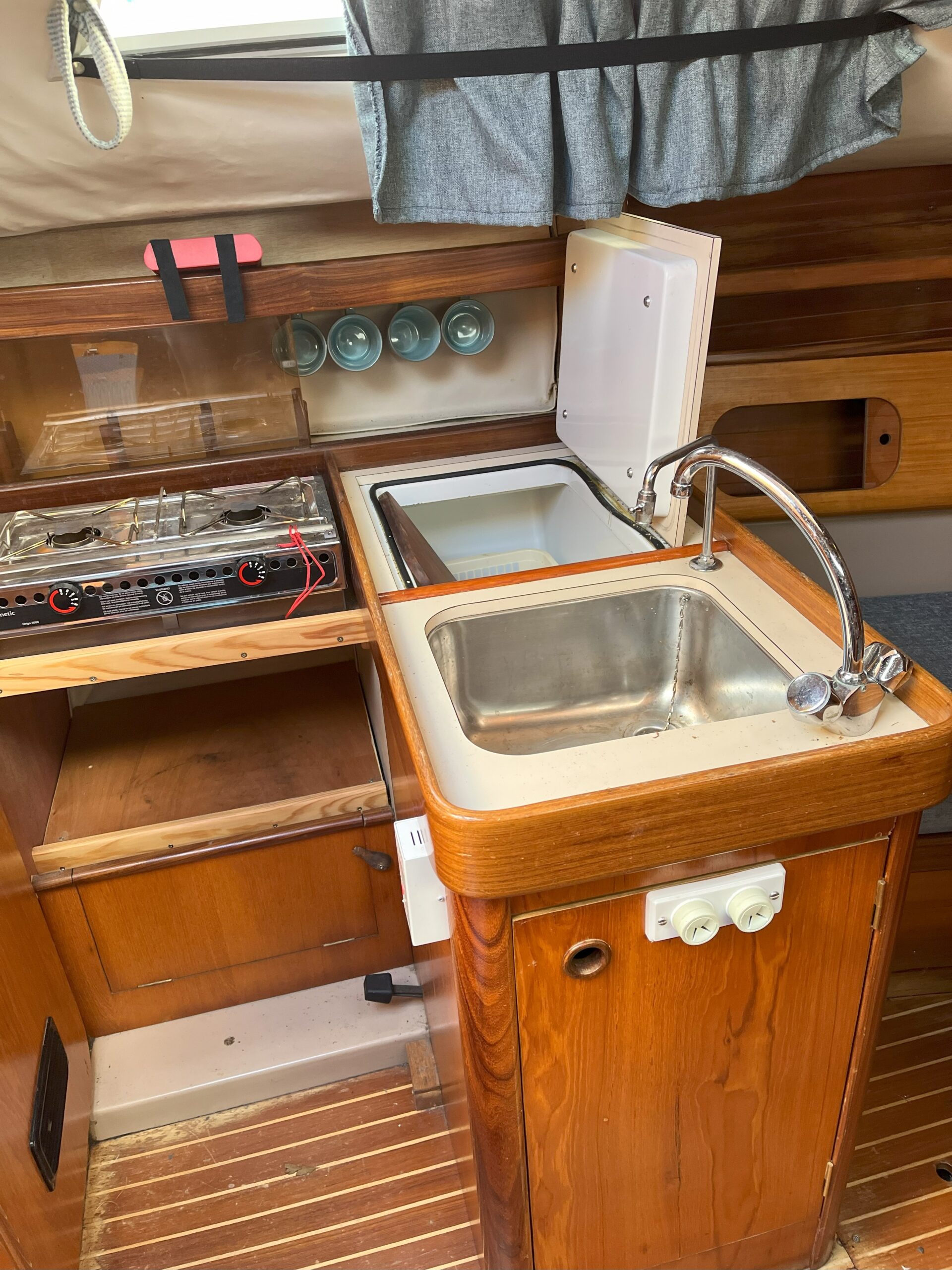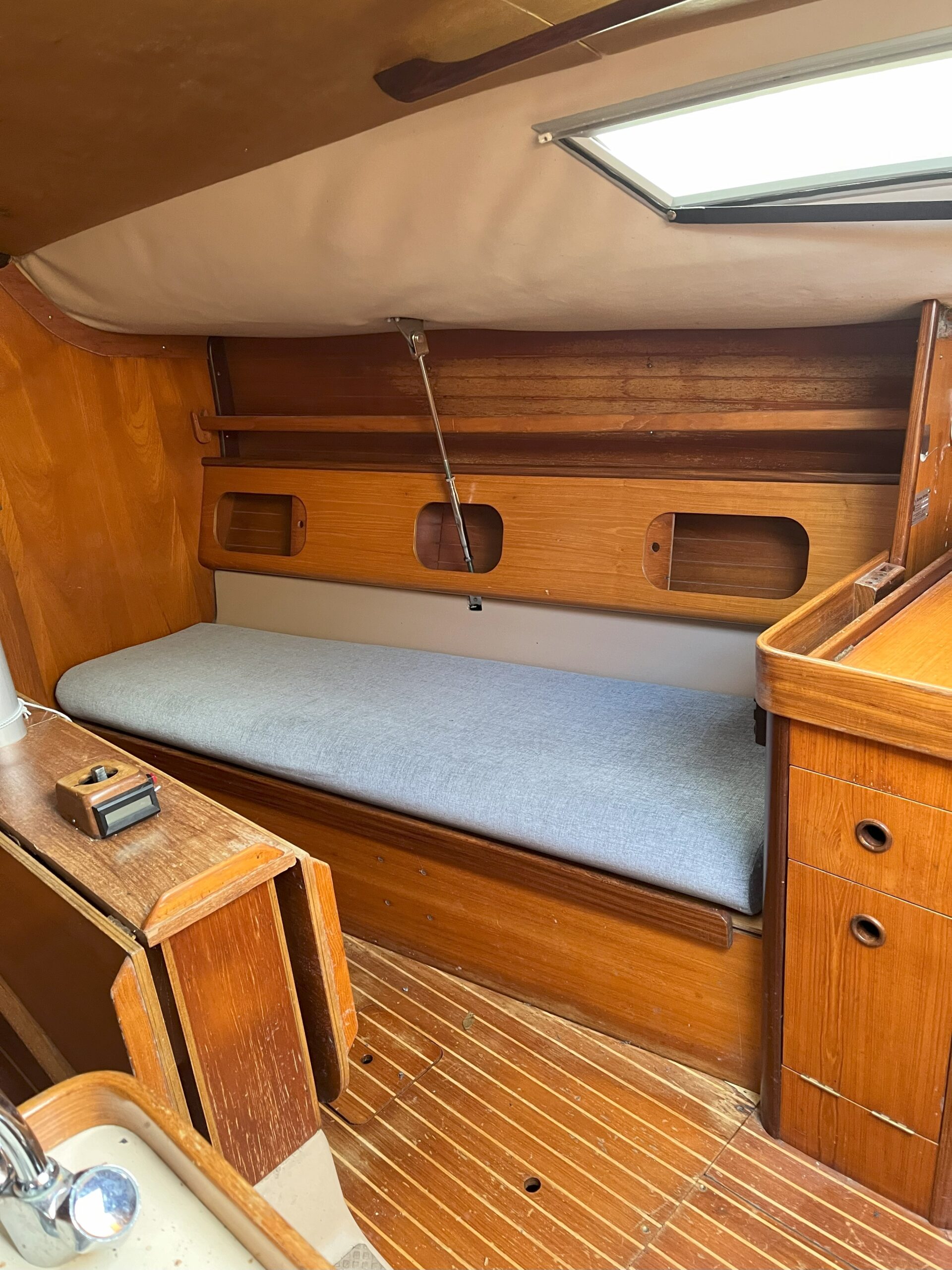 Heads – Presently chemical toilet. There is a holding tank with pump out facility, and original sea toilet.